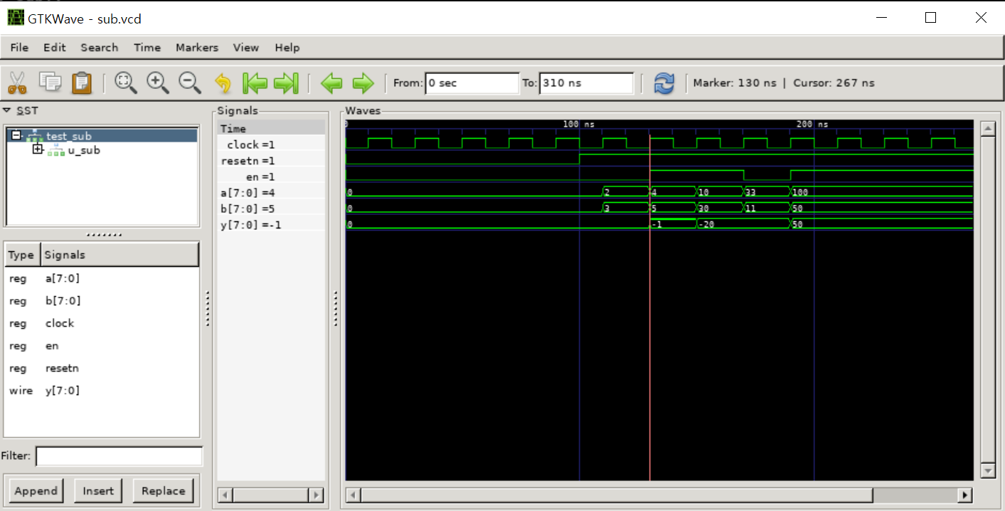 >>gtkwave sub.vcd
